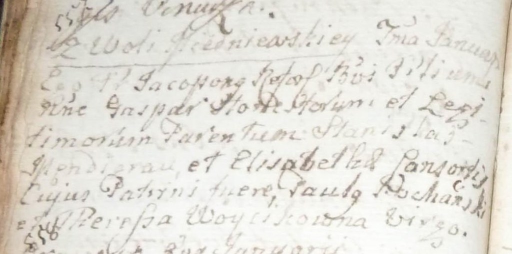 Ryc. 9. Akt urodzenia Kacpra Mędygrała z 1769 roku. Zapis zawiera nazwisko jego ojca w zlatynizowanej formie Mendigrau (źródło: Metryki GenBazy).