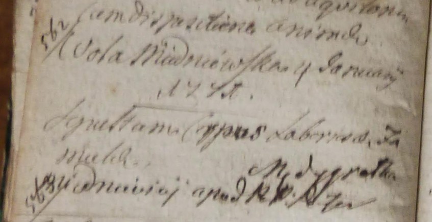 Dodatkową wskazówkę stanowi akt zgonu z 4 stycznia 1771 roku, odnotowany w Woli Miedniewskiej, dotyczący kobiety o nazwisku Mędygrał, której imię nie zostało wpisane, choć pozostawiono na nie miejsce (Ryc. 14). Nie można wykluczyć, że chodziło o kolejną żonę tego samego Stanisława. Gdyby tak było, „drugi” Stanisław mógł być żonaty co najmniej trzykrotnie: z Teresą, następnie z nieznaną z imienia kobietą, a wreszcie z Jadwigą Sołtys. Nie byłby to zresztą układ niezwykły, ponieważ szybkie, powtórne małżeństwa po śmierci współmałżonka były w XVIII wieku częste i wynikały w głównej mierze z przyczyn praktycznych— potrzeby opieki nad dziećmi, prowadzenia gospodarstwa czy utrzymania ciągłości domowego życia. Na obecnym etapie badań hipotezą roboczą pozostaje przypuszczenie, że między Teresą a Jadwigą Sołtys Stanisław był jeszcze raz żonaty.